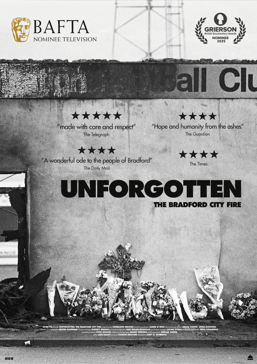 A BAFTA and Grierson Award Nominated Documentary (2026) focussing on the people of Bradford following the tragedy of the Bradford City fire of 1985 where 56 people tragically lost their lives in the stands of the Football Ground, the central part of the comminuty. The documentary highlights how the City of Bradford changed forever in its wake and how the memory of those people who lost their lives will never be forgotten.